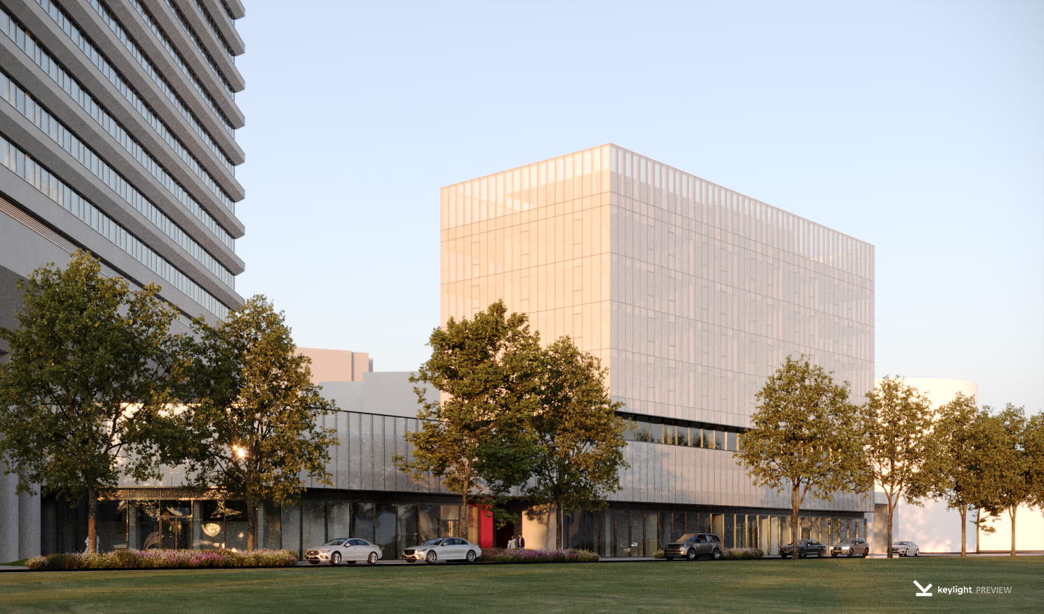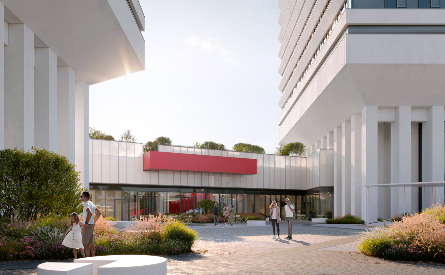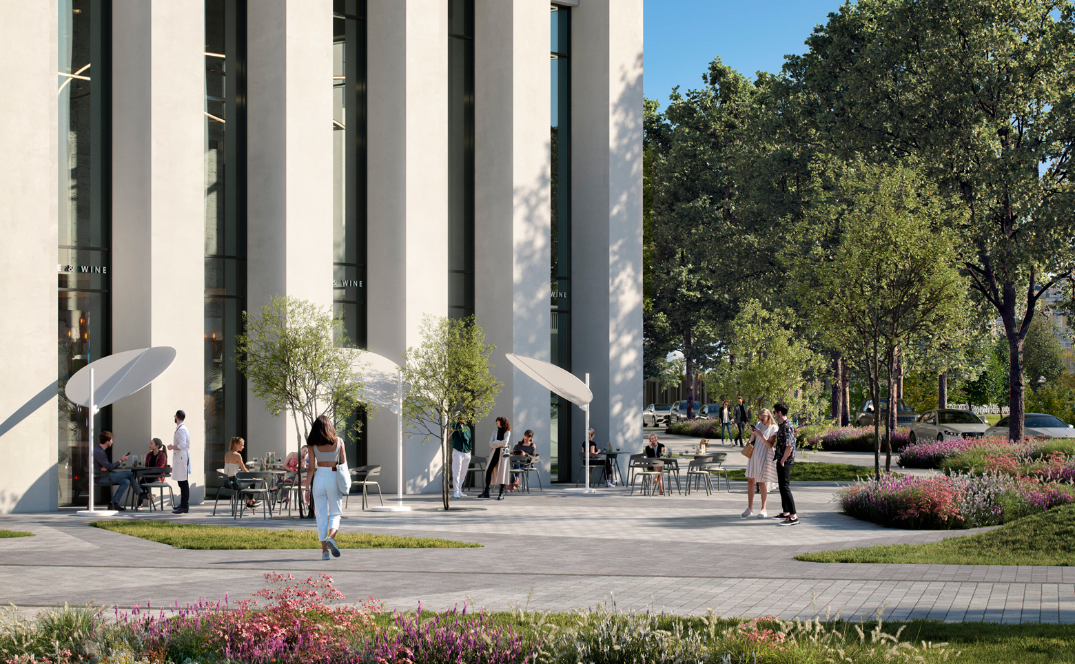 Жилой комплекс включает в себя две жилые башни высотой 41 и 49 этажей и 6-этажный общественно-деловой центр. Архитектурная концепция проекта в стиле современного минимализма разработана бюро Kleinewelt Architekten. Вход во все три здания проходит через стилобат, служащий просторным лобби, в котором размещены колясочные и лапомойки, гостевые санузлы, стойки ресепшен и постаматы. Второй этаж зданий занимает общественное пространство, оформленное в виде остекленного променада. В каждой башне установлено 6 современных скоростных лифтов. На двух подземных уровнях комплекса расположены паркинг и кладовые помещения. Кладовки предусмотрены также и на жилых этажах.