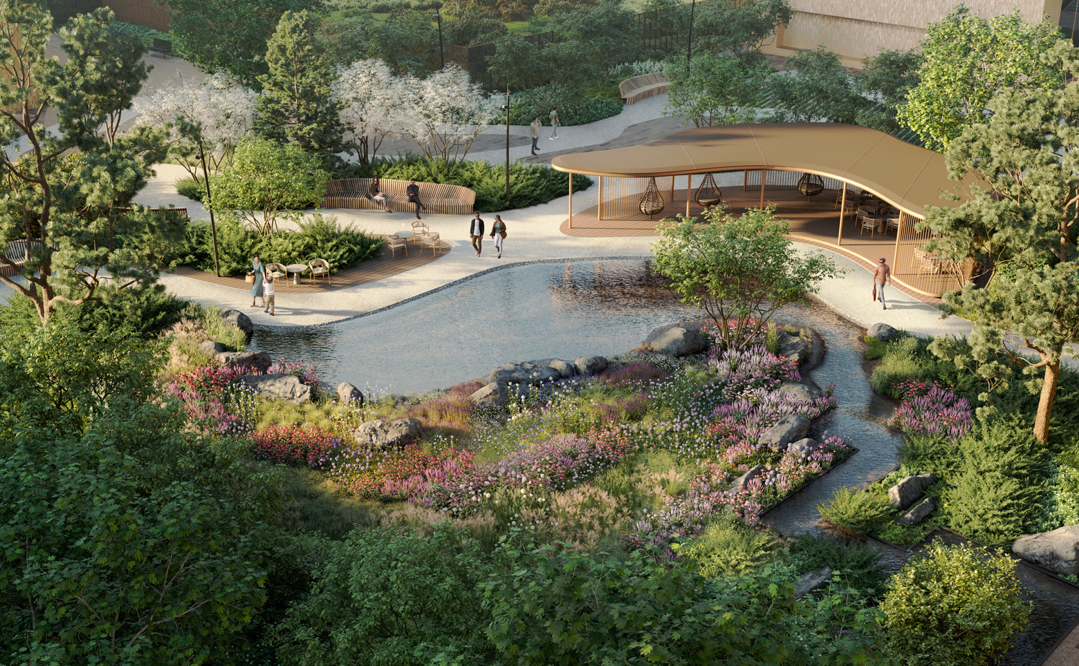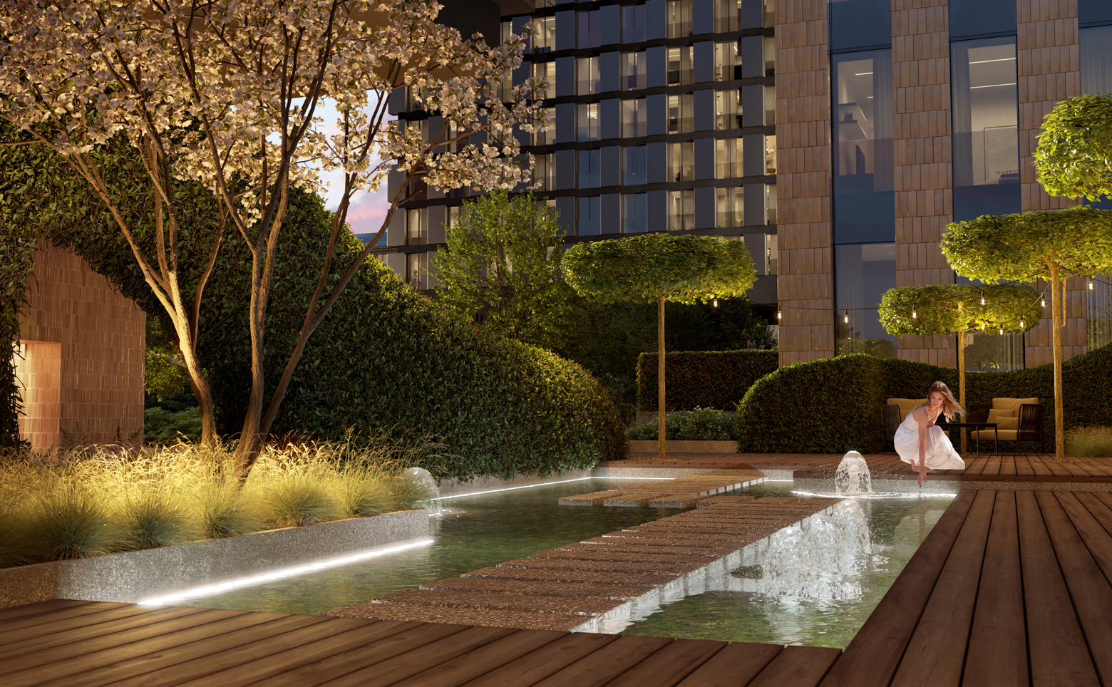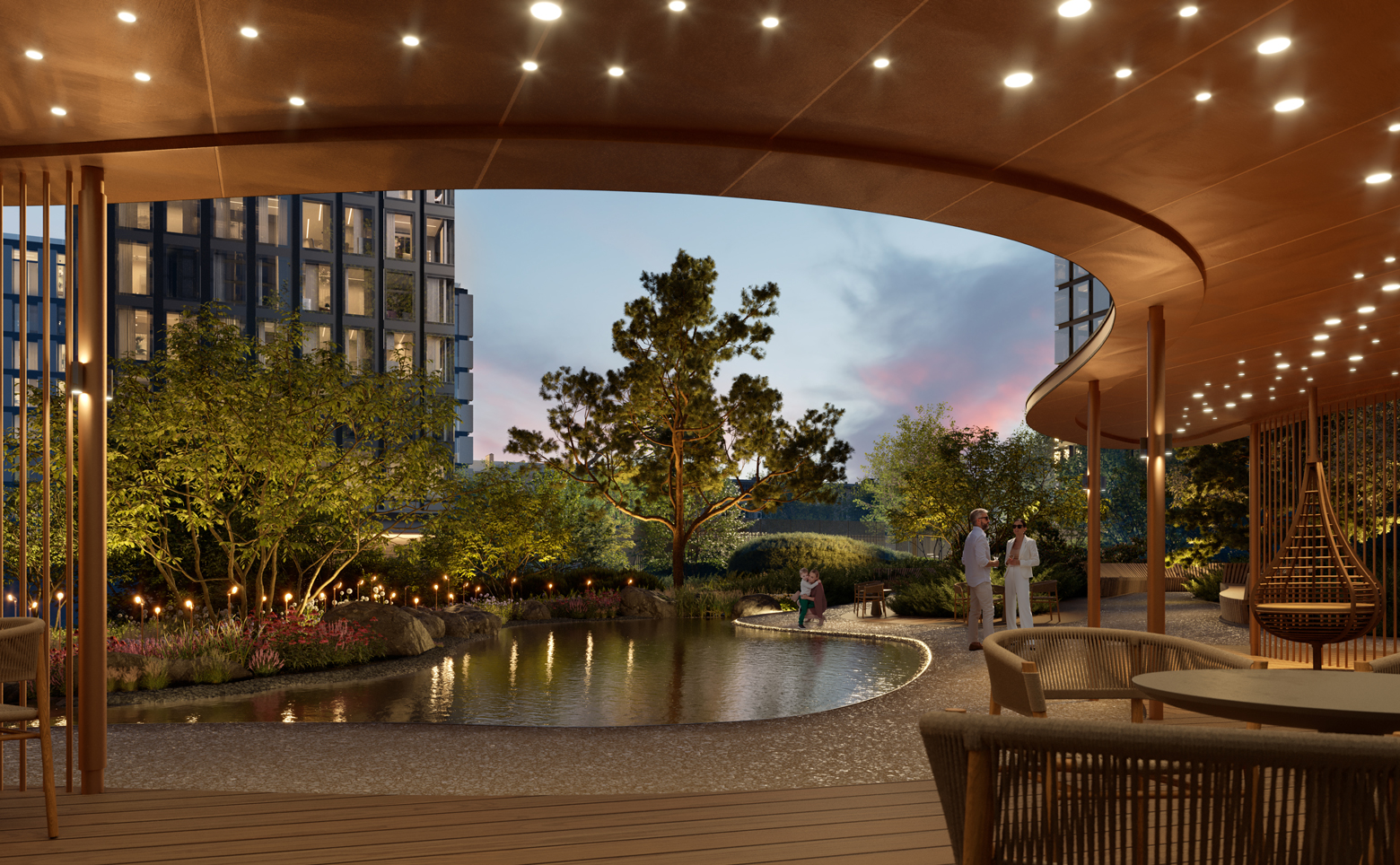 В современном ландшафтном дворе-парке площадью 1,7 гектара c арт-объектами оборудованы игровая спортивная площадка и воркаут-зона по стандарту FIT LAB. Для маленьких жителей на свежем воздухе создана развивающая детская площадка по стандарту KID’S LAB. На территории квартала предусмотрены престижная частная школа и детский сад. Среда двора-парка дополняется инфраструктурным хабом, для которого отведено отдельное здание. В нём предусмотрены общественная гостиная по стандарту FRIEND’S LAB; игровая комната по стандарту KID’S LAB; фитнес-клуб (24/7) по стандарту FIT LAB с собственным 25-метровым бассейном с сауной, хаммамом, хот-табом и wellness-зоной.