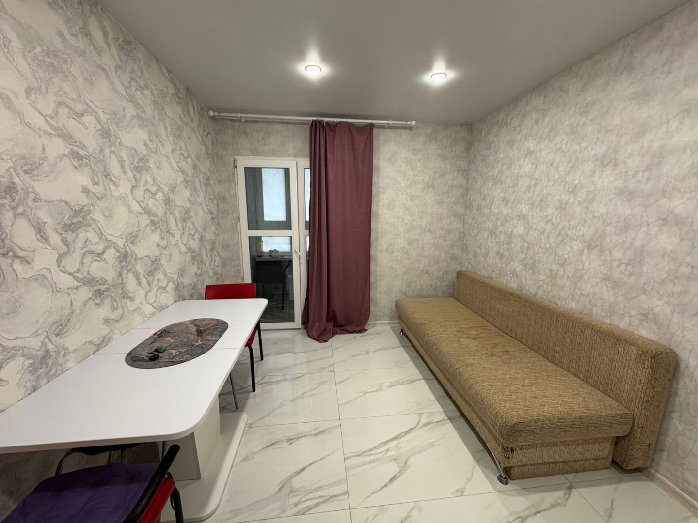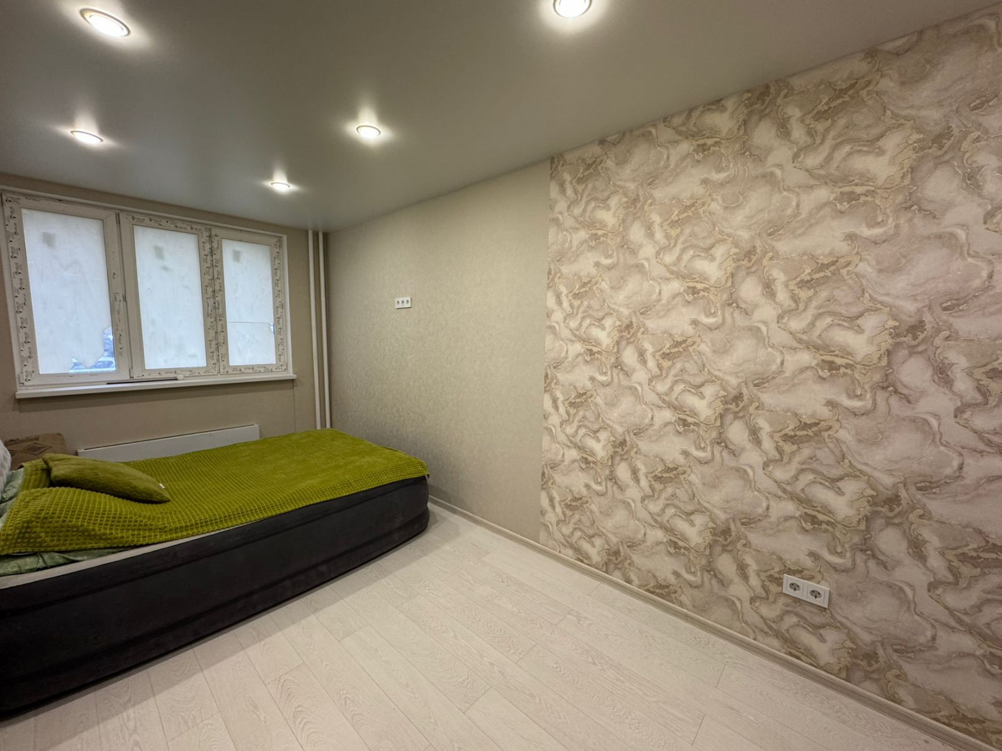 В квартире выполнен качественный евро-ремонт с использованием импортных материалов в светлых тонах. Есть просторное место под шкаф-купе для хранения вещей. Полностью установлена сантехника в ванной комнате.